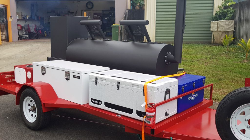 A smoked angus beef patty, 2 slices of American burger cheese and bbq sauce.
